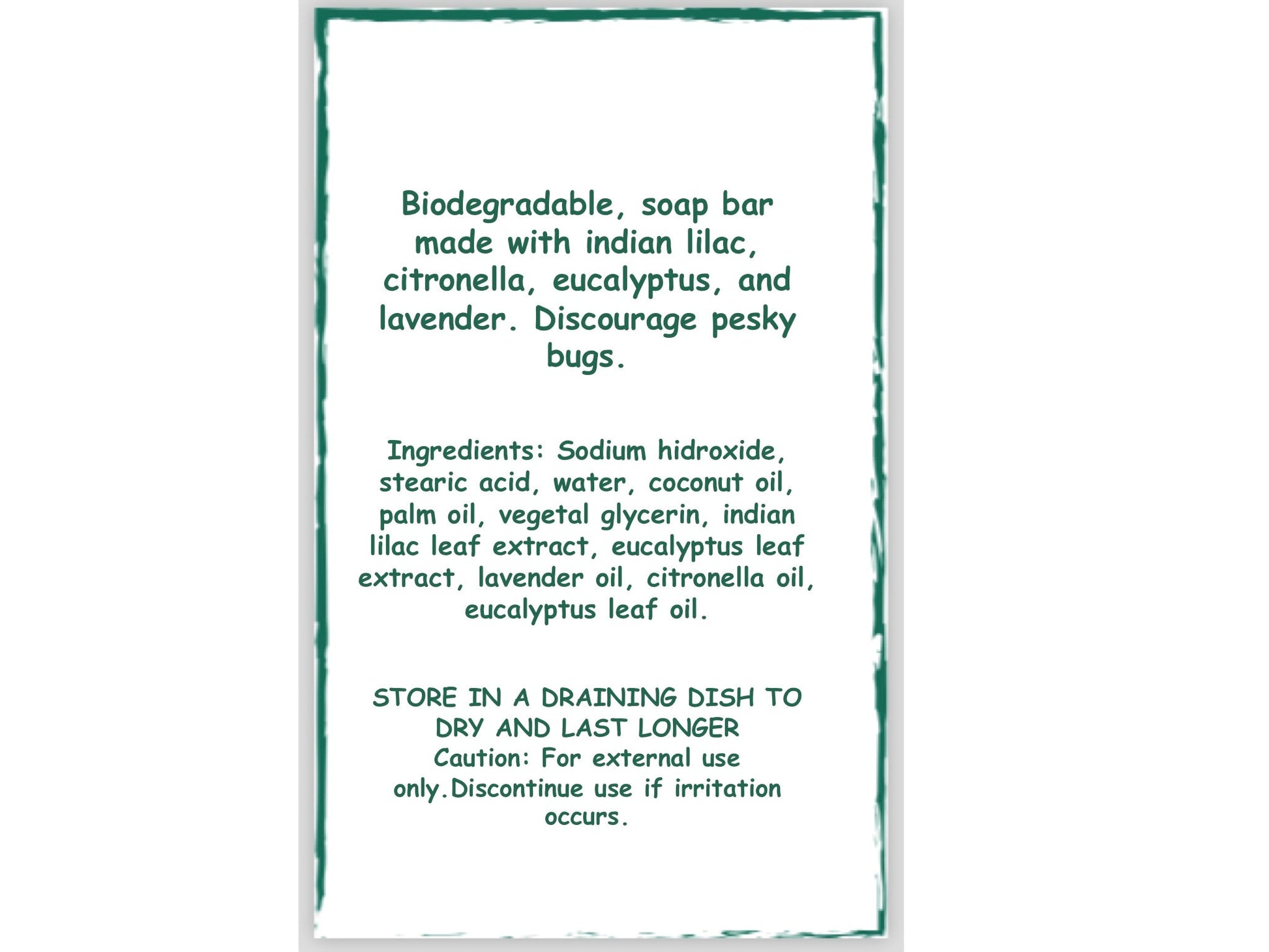 Ingredients: Vegetable glycerin, coconut oil, palm oil, lavender oil, sodium hydroxide, stearic acid, water, oat kernel extract, oat powder, citronella, and melaleuca oil (tea tree), pigment white.