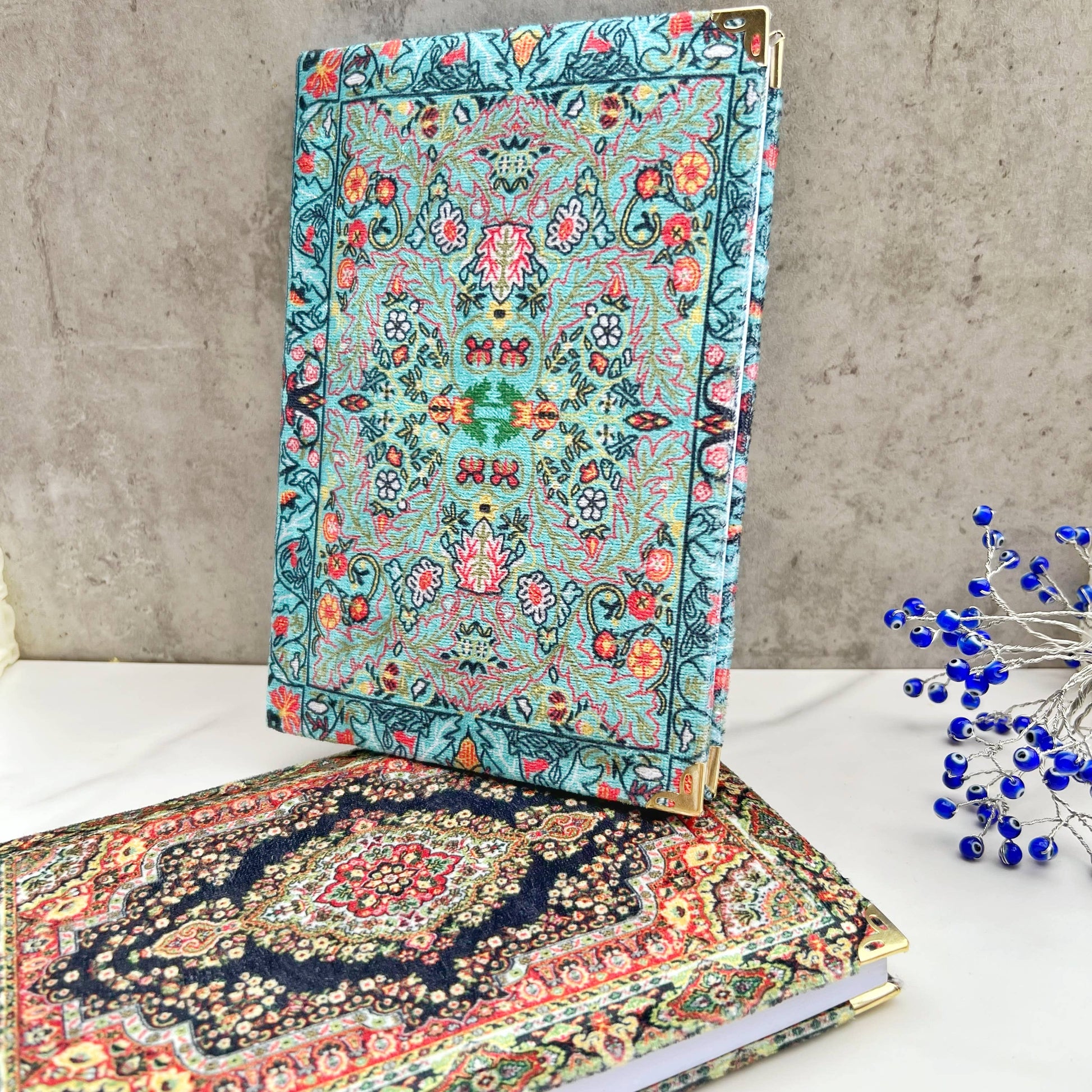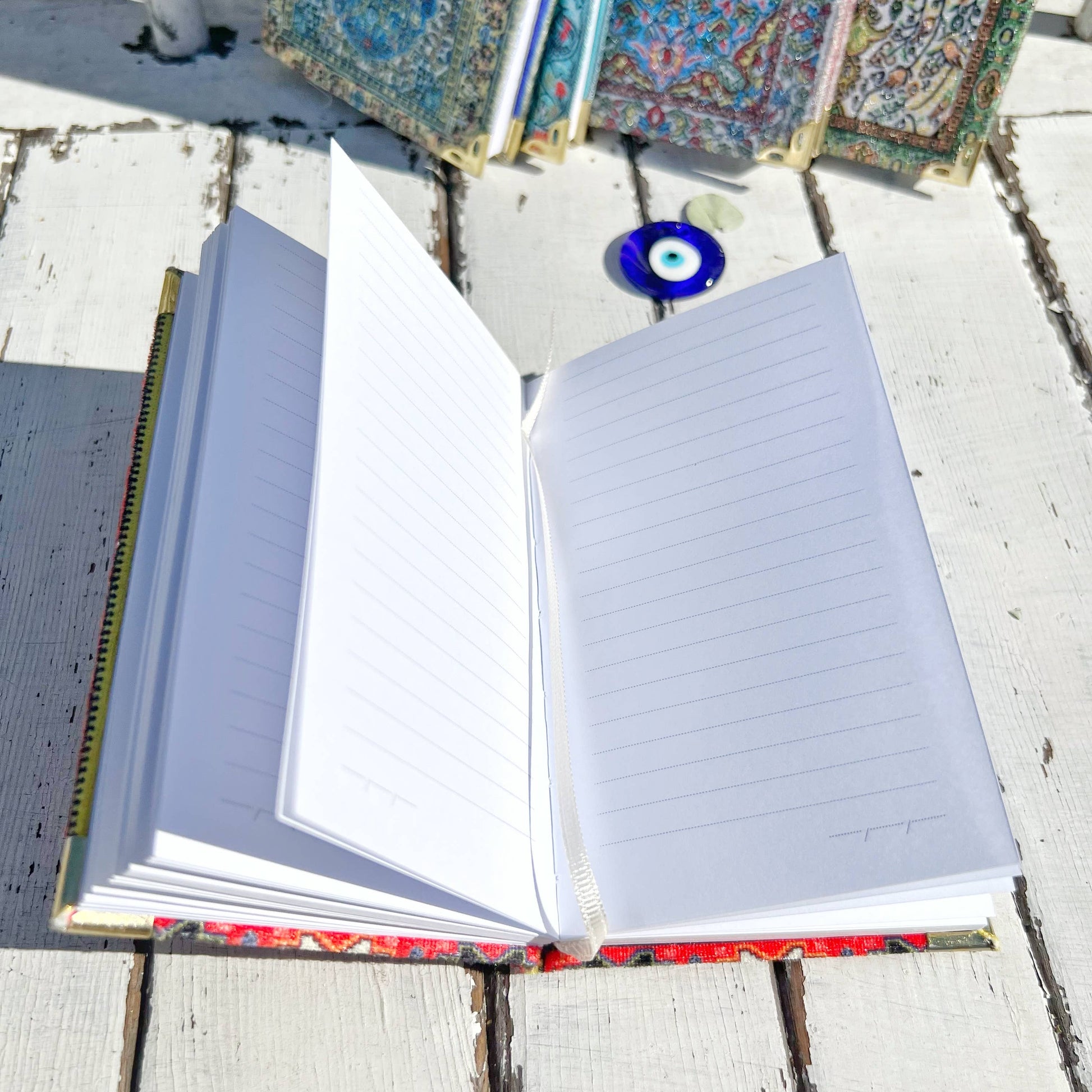 Make your thoughts and ideas stand out with our exclusive bohemian woven journal! Inspired by traditional Turkish kilim fabric, crafted with velveteen fabric. This notebook is both beautiful and functional, perfect for expressing your most creative self. With its durable cover, easy-to-clean pages, and intricate woven design, you'll be inspired every time you open it up. The Bohemian Magical Rug will take you places while you discover the joy of writing in this beautiful journal.