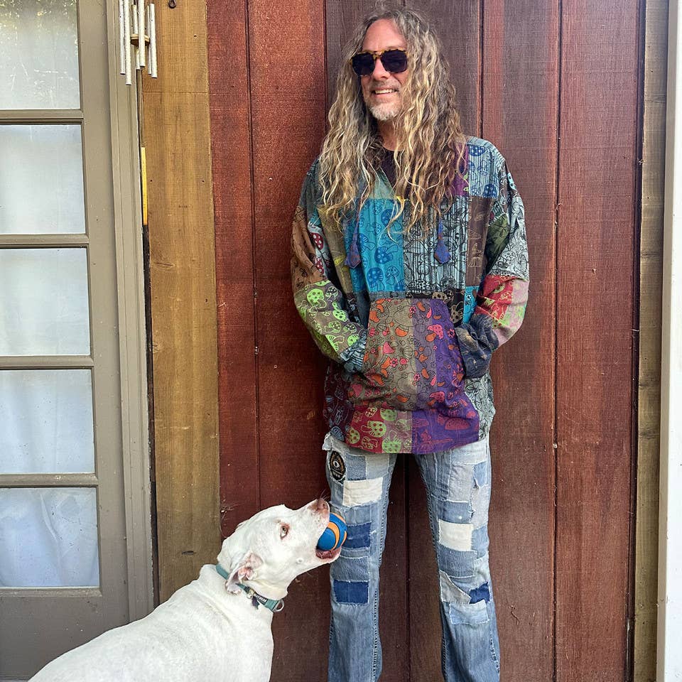 Jayli Clothing - Boho Hippie Cotton Patchwork Mushroom Print Pullover Hoodie