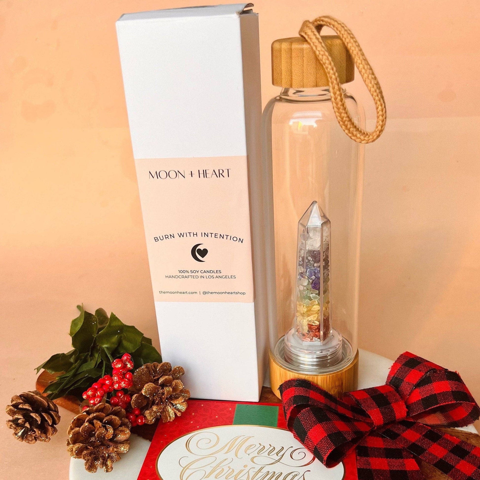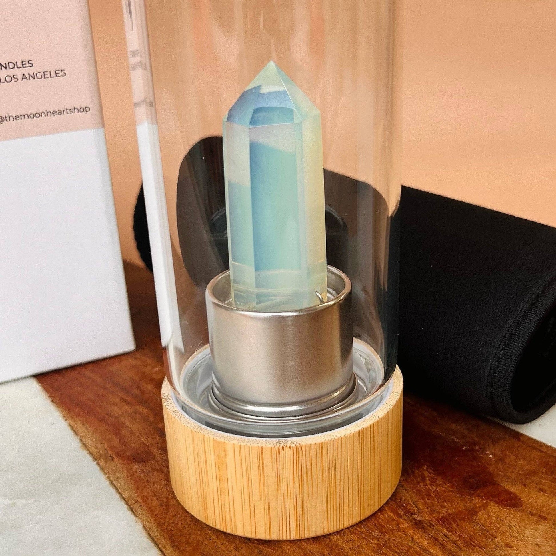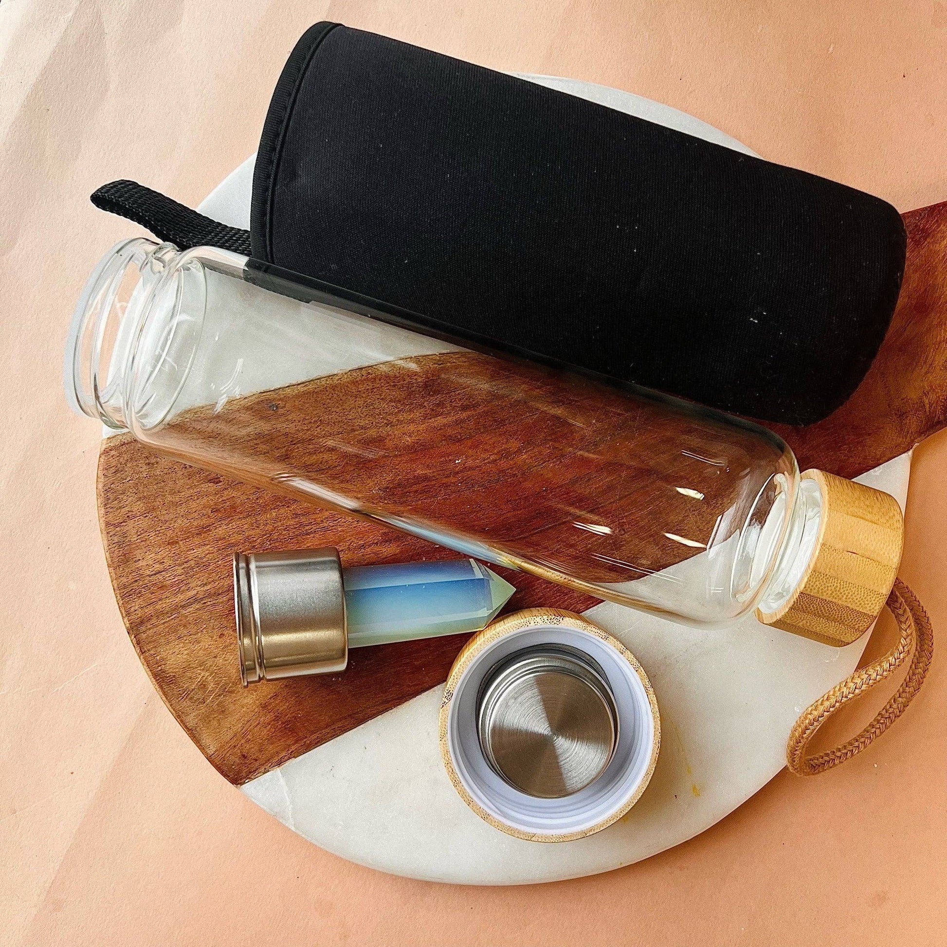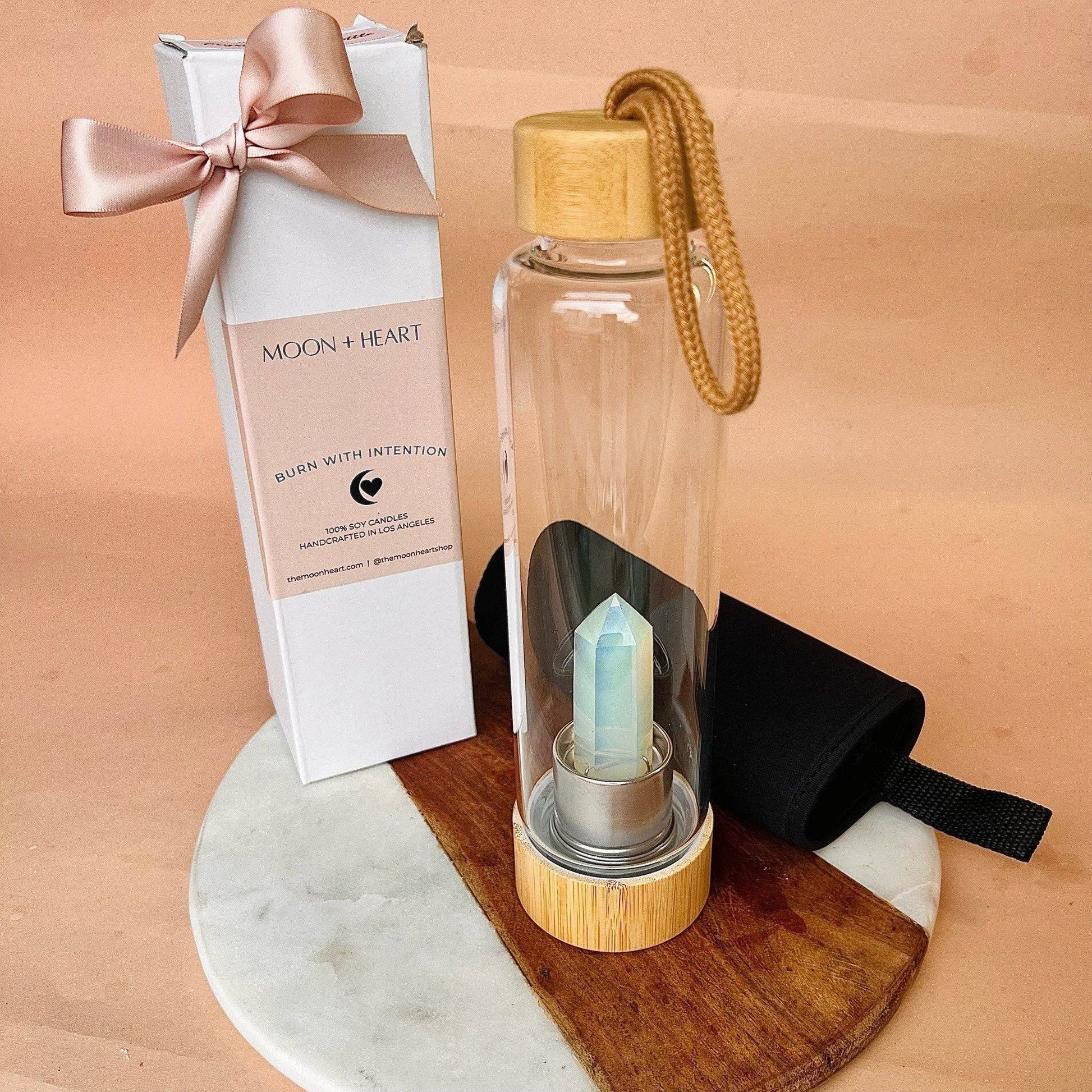 Moonstone Crystal Water Bottle with case | Crystal Infused Water | Moon Water | Glass Water bottle