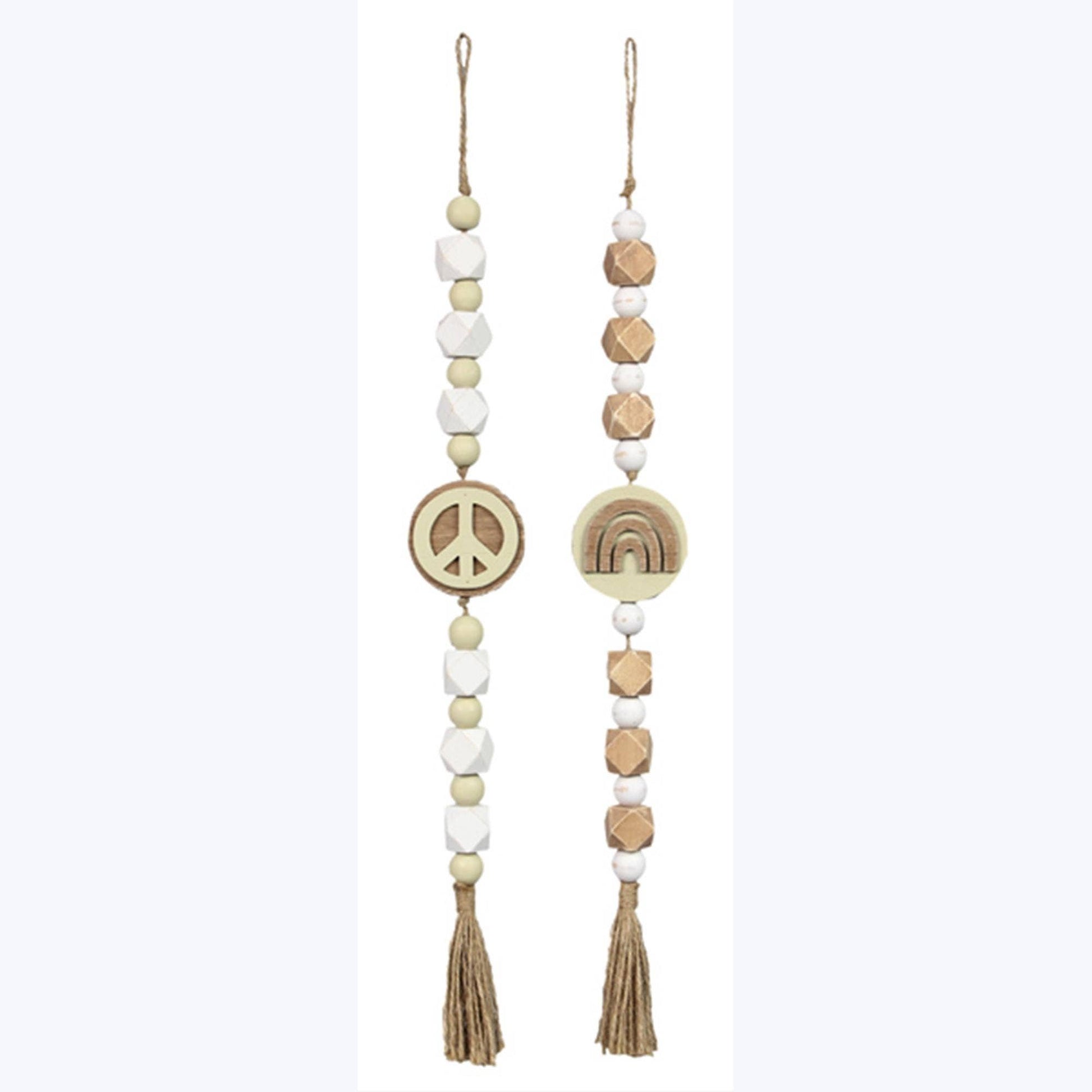Introducing the Wood Positive Vibes Charm with Geometric Beads by Young's Inc. This product is a unique blend of geometric beads and a wood charm engraved with 'Positive Vibes', adding a touch of warmth and positivity to any space. Young's Inc., celebrating over 31 years in business, continues to provide quality and affordable home decor and fashion accessories.